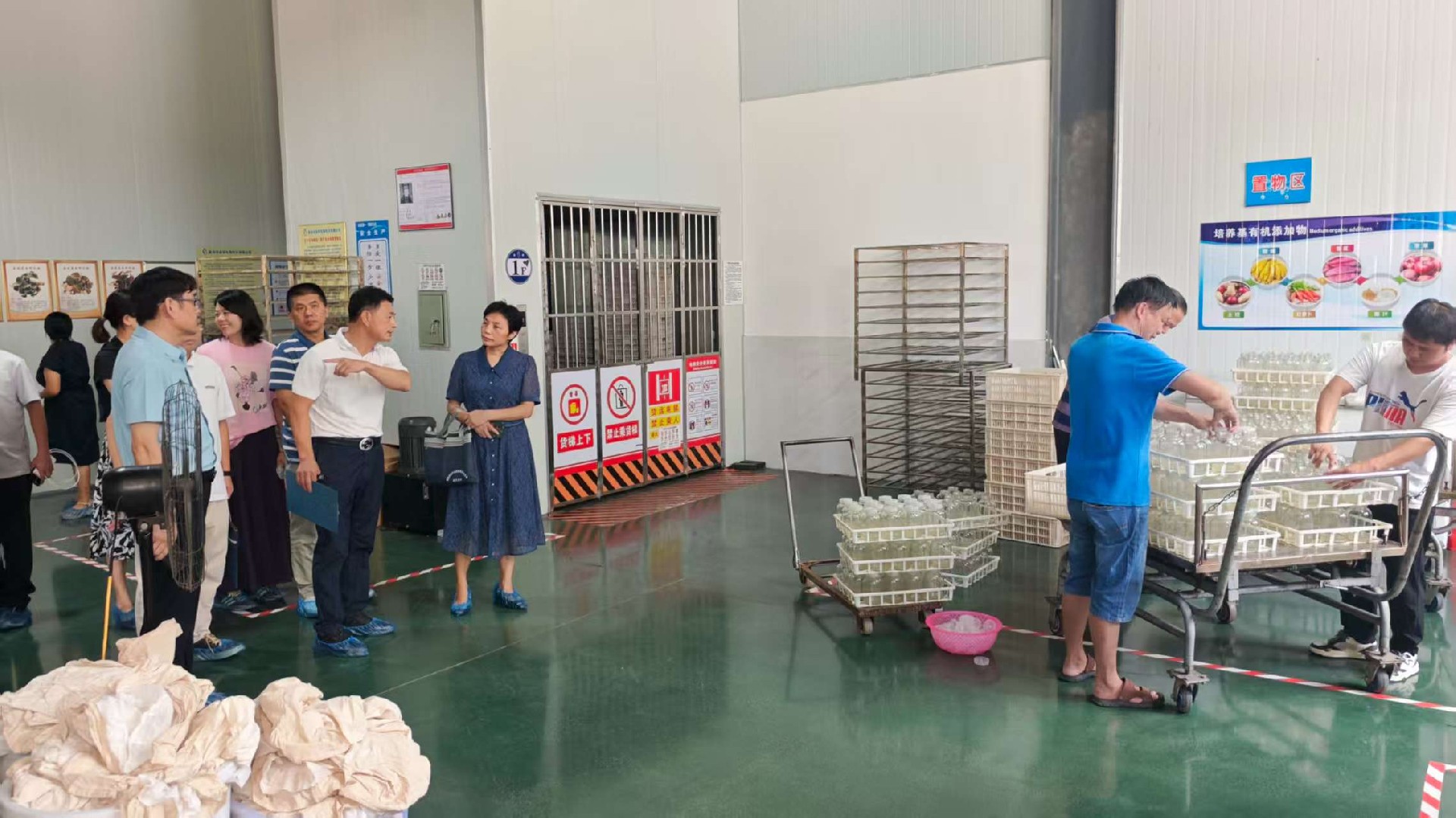 随后,调研组实地参观了金草公司的高温灭菌、培养基制作、灌装、接种、培养等生产环节,近距离观察生产流程、设备运行及新产品展示情况,直观了解企业在生产管理、质量把控、技术转化等环节的具体做法。福建农林大学材料工程学院杨文斌教授结合专业领域,就企业新材料研发与应用提出了建设性意见。