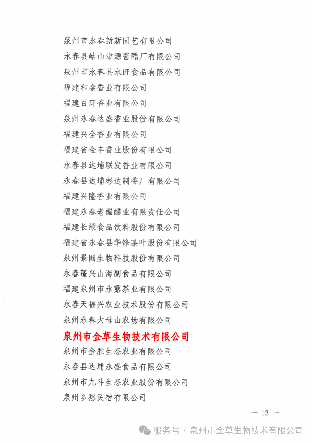 【喜讯】泉州市金草生物技术有限公司荣膺 “泉州市第十一轮农业产业化市级重点龙头企业”!